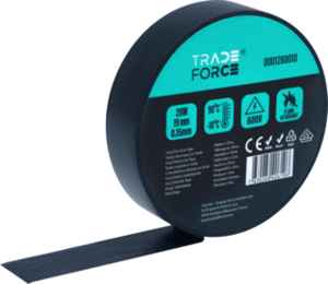 Tradeforce zelfklevende tape, polyvinylchloride (PVC), zwart, (lxb) 20mx19mm, dikte 0.15mm, isolerend, zelfdovend, temperatuurbestendigheid -10 - +90°C