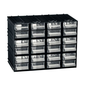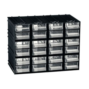 Koppelbare ladekast, Totale hoogte: 169 mm, Totale breedte: 225 mm, Totale diepte: 133 mm, Frame kleur: Zwart, Lade kleur: Transparant, Aantal laden: 24, Geleverd gemonteerd: ja, Montage: Zelfbouw, Materiaal: Kunststof, Lean Management: ja, Nuttige breedte lade: 48 mm, Nuttige diepte lade: 114.5 mm, Recyclebare verpakking: Ja - 100%, Gerecyclede verpakkingen: 100 %, Recyclebaar product: Ja - 100%, Gerecycled product: 50 %, Eco-verantwoordelijke aanpak: ja, Type: Lage kast, Nuttige hoogte lade: 24 mm