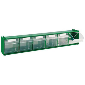 Ladeblok Madia, Totale hoogte: 112 mm, Totale breedte: 600 mm, Totale diepte: 96 mm, Frame kleur: Groen, Lade kleur: Transparant, Aantal laden: 6, Geleverd gemonteerd: ja, Montage: Zelfbouw, Materiaal: Kunststof, Lean Management: ja, Nuttige breedte lade: 8.8 cm, Nuttige diepte lade: 6.5 cm, Recyclebare verpakking: Ja - 100%, Gerecyclede verpakkingen: 100 %, Recyclebaar product: Ja - 100%, Model: Madia 2, Type: Lage kast, Nuttige hoogte lade: 9.8 cm