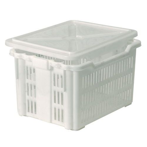 Dichte bodem en open wanden. Formaat geschikt voor opslag en verplaatsing van speciale broden, rond, korte, boerenbrood, enz. Wit polyethyleen.