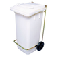 Met deksel, handgreep aan voorkant, zonder pedaal. Van polyethyleen met hoge dichtheid. Steriliseerbaar. Bestand tegen warmte en koude. 2 grote wielen aan de achterzijde van Ø 100 mm voor hanteringsgemak. Afvalbak, wit. Set met pedalen en zakhouder niet inbegrepen. Let op: product verkocht zonder pedaal.