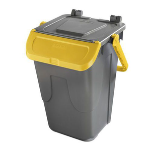 Kunststof afvalbak voor recycling 35 l, Totale inhoud: 35 L, Opening: Kantelbaar, Materiaal: Kunststof, Materiaal: Polypropyleen, Vuilnisbak inhoud (Reeks): Gemiddelde (11 - 90 L), Kleur: Grijs, Hoogte: 52 cm, Breedte: 36.5 cm, Lengte: 37 cm, Gerecycled product: 42 %, Eco-verantwoordelijke aanpak: ja, Gewicht: 1.4 kg, Deksel kleur: Geel