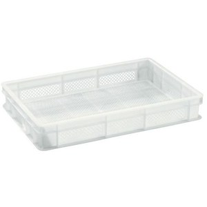 Euronorm-bak met opengewerkte wanden en bodem, Totale inhoud: 18 L, Stapelbaar: ja, Totale hoogte: 100 mm, Totale breedte: 400 mm, Totale lengte: 600 mm, Euronorm-bak inhoud (Reeks): Small (1 - 20 L), Type zijkant: Geperforeerd, Gebruik voor voedsel: ja, Bak kleur: Wit, Type bodem: Geperforeerd, Materiaal: Polyethyleen van hoge dichtheid, Nuttige breedte: 365 mm, Recyclebare verpakking: Ja - 100%, Gerecyclede verpakkingen: 100 %, Recyclebaar product: Ja - 100%, Gewicht: 1.2 kg, Min. gebruikstemperatuur: -35 °C, Max. gebruikstemperatuur: 80 °C, Gebruik: Opslaan, Nuttige hoogte: 83 mm, Nuttige lengte: 565 mm