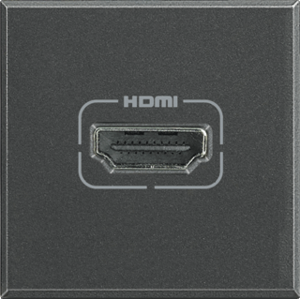Bticino Axolute inzetplaat schakelmateriaal, kunststof, grijs, gebruik HDMI, samenstelling basiselement met centrale, inbouw (stucwerk), uitvoering oppervlakte mat, variant antraciet, 1 aansluiting, 2 modules (bij modulair sys, beschermingsgraad (IP) IP21, geschikt voor aantal connectoren 1,