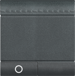 Bticino LivingLight bed.element / centr.pl. schakelmat., kunststof, antraciet, (bxhxd) 43.5x43.5x7.2mm, uitvoering 2-delige drukker, gebruik schakelaar/drukker, uitvoering oppervlakte mat, opdruk/indicatie overig, controlevenster/verlicht, beschermingsgraad (IP) IP20, RAL-nummer 7015, halogeenvrij,