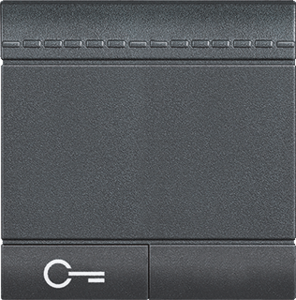 Bticino LivingLight bed.element / centr.pl. schakelmat., kunststof, antraciet, (bxhxd) 43.5x43.5x7.2mm, uitvoering enkele wip, gebruik zoemer, uitvoering oppervlakte mat, opdruk/indicatie overig, controlevenster/verlicht, beschermingsgraad (IP) IP20, RAL-nummer 7015, halogeenvrij,