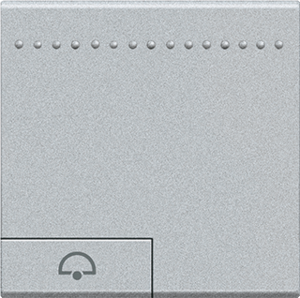 Bticino LivingLight bed.element / centr.pl. schakelmat., kunststof, aluminium, (bxhxd) 43.5x43.5x7.2mm, uitvoering enkele wip, gebruik overig, uitvoering oppervlakte mat, opdruk/indicatie symbool"bel", controlevenster/verlicht, beschermingsgraad (IP) IP20, RAL-nummer 7035, halogeenvrij,