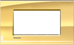 Bticino LivingLight afdekraam schakelmateriaal, metaal, goud, (bxhxd) 142x86x9.2mm, uitvoering oppervlakte glanzend, montagerichting horizontaal, 1 eenheid, beschermingsgraad (IP) overig, 1 eenheden horizontaal, slagvastheid IK00, RAL-nummer 1035, kwaliteit overig, 4 modules horizontaal (bij,
