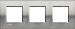 Bticino LivingLight afdekraam schakelmateriaal, metaal, roestvaststaal (RVS), (bxhxd) 230x86x10.2mm, uitvoering oppervlakte mat, montagerichting horizontaal en verticaal, 3 eenheden, beschermingsgraad (IP) overig, 3 eenheden horizontaal, slagvastheid IK00, RAL-nummer 7048, kwaliteit overig,