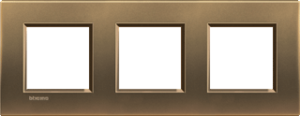 Bticino LivingLight afdekraam schakelmateriaal, metaal, brons, (bxhxd) 230x86x10.2mm, uitvoering oppervlakte glanzend, montagerichting horizontaal en verticaal, 3 eenheden, beschermingsgraad (IP) overig, 3 eenheden horizontaal, slagvastheid IK00, RAL-nummer 1036, kwaliteit overig,