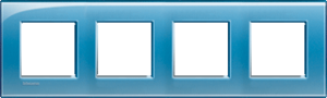 Bticino LivingLight afdekraam schakelmateriaal, kunststof, blauw, (bxhxd) 301x86x10.2mm, uitvoering oppervlakte glanzend, montagerichting horizontaal en verticaal, 4 eenheden, beschermingsgraad (IP) overig, 4 eenheden horizontaal, slagvastheid IK00, RAL-nummer 7040, kwaliteit kunststof glas,