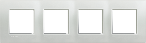 Bticino LivingLight afdekraam schakelmateriaal, metaal, zilver, (bxhxd) 301x86x10.2mm, uitvoering oppervlakte glanzend, montagerichting horizontaal en verticaal, 4 eenheden, beschermingsgraad (IP) overig, 4 eenheden horizontaal, slagvastheid IK00, RAL-nummer 9010, kwaliteit overig,