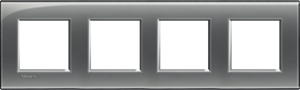 Bticino LivingLight afdekraam schakelmateriaal, kunststof, grijs, (bxhxd) 301x86x10.2mm, uitvoering oppervlakte glanzend, montagerichting horizontaal en verticaal, 4 eenheden, beschermingsgraad (IP) overig, 4 eenheden horizontaal, slagvastheid IK00, RAL-nummer 9007, kwaliteit kunststof glas,