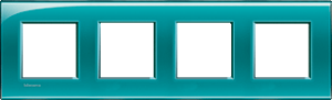 Bticino LivingLight afdekraam schakelmateriaal, kunststof, groen, (bxhxd) 301x86x10.2mm, uitvoering oppervlakte glanzend, montagerichting horizontaal en verticaal, 4 eenheden, beschermingsgraad (IP) overig, 4 eenheden horizontaal, slagvastheid IK00, RAL-nummer 6028, kwaliteit kunststof glas,