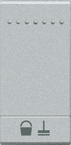 Bticino LivingLight bed.element / centr.pl. schakelmat., kunststof, aluminium, (bxhxd) 21.2x43.5x9.3mm, uitvoering enkele drukker, gebruik schakelaar/drukker, uitvoering oppervlakte mat, opdruk/indicatie overig, controlevenster/verlicht, beschermingsgraad (IP) IP20, RAL-nummer 7035, halogeenvrij,