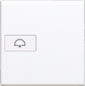 Bticino LivingLight bed.element / centr.pl. schakelmat., kunststof, wit, (bxhxd) 43.5x43.5x9.3mm, uitvoering 2-delige drukker, gebruik schakelaar/drukker, uitvoering oppervlakte mat, opdruk/indicatie symbool"bel", controlevenster/verlicht, beschermingsgraad (IP) IP20, RAL-nummer 9003, halogeenvrij,