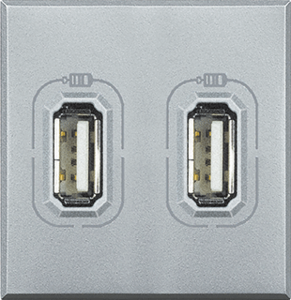 Bticino Axolute inzetplaat schakelmateriaal, kunststof, aluminium, gebruik USB/Jack connector, samenstelling basiselement met centrale, inbouw (stucwerk), uitvoering oppervlakte glanzend, 2 modules (bij modulair sys, beschermingsgraad (IP) IP20, halogeenvrij, kwaliteit thermoplast