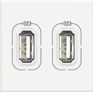 Bticino Axolute inzetplaat schakelmateriaal, kunststof, wit, gebruik USB/Jack connector, samenstelling basiselement met centrale, inbouw (stucwerk), uitvoering oppervlakte glanzend, 2 modules (bij modulair sys, beschermingsgraad (IP) IP20, halogeenvrij, kwaliteit thermoplast
