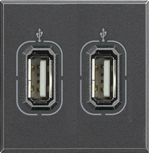 Bticino Axolute inzetplaat schakelmateriaal, kunststof, antraciet, gebruik USB/Jack connector, samenstelling basiselement met centrale, inbouw (stucwerk), uitvoering oppervlakte glanzend, 2 modules (bij modulair sys, beschermingsgraad (IP) IP20, halogeenvrij, kwaliteit thermoplast