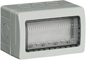 Bticino Idrobox opbouwbak inbouwschakelmateriaal, kunststof, grijs, (bxdxh) 132x64x76mm, samenstelling opbouwbak, montagerichting horizontaal, beschermingsgraad (IP) IP55, 1 eenheid, met kabelinvoer, met afdekraam, uitvoering oppervlakte glanzend, schakelmateriaaldiepte 64mm, slagvast,
