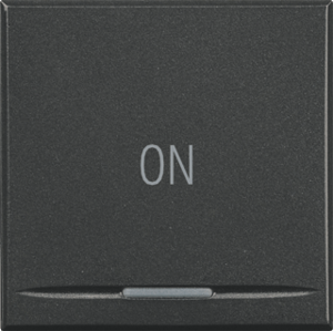 Bticino Axolute bed.element / centr.pl. schakelmat., kunststof, antraciet, (bxhxd) 45x45x5.3mm, uitvoering enkele wip, gebruik schakelaar/drukker, uitvoering oppervlakte glanzend, opdruk/indicatie symbool"licht", controlevenster/verlicht, beschermingsgraad (IP) IP21, RAL-nummer 9004,