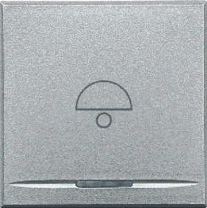 Bticino Axolute bed.element / centr.pl. schakelmat., kunststof, aluminium, (bxhxd) 45x45x5.3mm, uitvoering enkele wip, gebruik schakelaar/drukker, uitvoering oppervlakte glanzend, opdruk/indicatie overig, controlevenster/verlicht, beschermingsgraad (IP) IP21, RAL-nummer 9006,