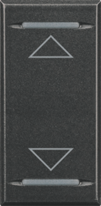 Bticino Axolute bed.element / centr.pl. schakelmat., kunststof, antraciet, (bxhxd) 22.5x45x5.3mm, uitvoering 2-delige wip, gebruik schakelaar/drukker, uitvoering oppervlakte glanzend, opdruk/indicatie overig, controlevenster/verlicht, beschermingsgraad (IP) IP21, RAL-nummer 9004,