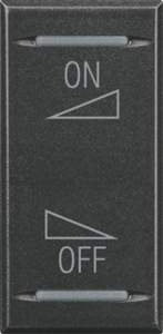 Bticino Axolute bed.element / centr.pl. schakelmat., kunststof, antraciet, (bxhxd) 22.5x45x5.3mm, uitvoering 2-delige wip, gebruik schakelaar/drukker, uitvoering oppervlakte glanzend, opdruk/indicatie overig, controlevenster/verlicht, beschermingsgraad (IP) IP21, RAL-nummer 9004,