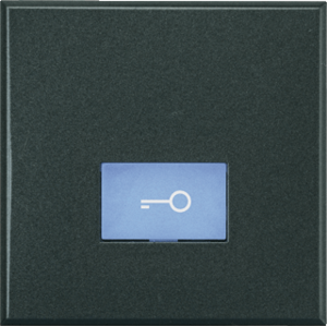 Bticino Axolute bed.element / centr.pl. schakelmat., kunststof, antraciet, (bxhxd) 45x45x17mm, uitvoering 2-delige drukker, gebruik schakelaar/drukker, uitvoering oppervlakte glanzend, opdruk/indicatie symbool"sleutel/deur", controlevenster/verlicht, beschermingsgraad (IP) IP20, RAL-nummer 7015,