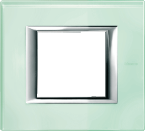 Bticino Axolute afdekraam schakelmateriaal, glas, groen, (bxhxd) 103.6x95.6x9.5mm, uitvoering oppervlakte glanzend, montagerichting horizontaal en verticaal, 1 eenheid, beschermingsgraad (IP) overig, 1 eenheden horizontaal, slagvastheid IK00, RAL-nummer 9002, kwaliteit glas,