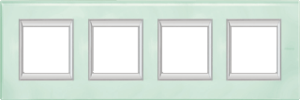 Bticino Axolute afdekraam schakelmateriaal, glas, groen, (bxhxd) 316.6x95.6x10.35mm, uitvoering oppervlakte glanzend, montagerichting horizontaal, 4 eenheden, beschermingsgraad (IP) overig, 4 eenheden horizontaal, slagvastheid IK00, RAL-nummer 9002, kwaliteit glas, 8 modules horizontaal (bij,