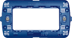 Bticino LivingLight houder modulair schakelmateriaal, kunststof, uitvoering overig, bevestiging met schroef, montagewijze module inzetstukken voorzijde, montagerichting horizontaal en verticaal, 4 modules horizontaal (bij, 1 modules verticaal (bij mo, met inbouwdoos, met schroeven,