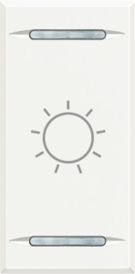 Bticino Axolute bed.element / centr.pl. schakelmat., kunststof, wit, (bxhxd) 22.5x45x5.3mm, uitvoering 2-delige wip, gebruik schakelaar/drukker, uitvoering oppervlakte glanzend, opdruk/indicatie symbool"licht", controlevenster/verlicht, beschermingsgraad (IP) IP21, RAL-nummer 9003,