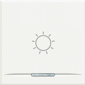 Bticino Axolute bed.element / centr.pl. schakelmat., kunststof, wit, (bxhxd) 45x45x5.3mm, uitvoering enkele wip, gebruik schakelaar/drukker, uitvoering oppervlakte glanzend, opdruk/indicatie symbool"licht", controlevenster/verlicht, beschermingsgraad (IP) IP21, RAL-nummer 9003,