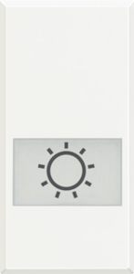 Bticino Axolute bed.element / centr.pl. schakelmat., kunststof, wit, (bxhxd) 22.3x44.9x5mm, uitvoering enkele drukker, gebruik schakelaar/drukker, uitvoering oppervlakte glanzend, opdruk/indicatie symbool"licht", controlevenster/verlicht, beschermingsgraad (IP) IP20, RAL-nummer 9003,
