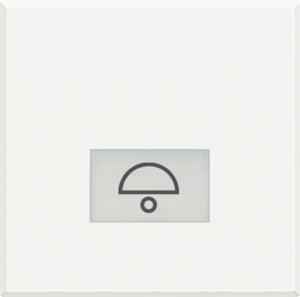 Bticino Axolute bed.element / centr.pl. schakelmat., kunststof, wit, (bxhxd) 45x45x17mm, uitvoering 2-delige drukker, gebruik schakelaar/drukker, uitvoering oppervlakte glanzend, opdruk/indicatie symbool"bel", controlevenster/verlicht, beschermingsgraad (IP) IP20, RAL-nummer 9003,