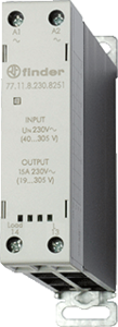 Finder 77 solid-staterelais MOSFET, (bxhxd) 22.5x104.5x120.3mm, 1 fasen, modulaire uitvoering (voor railmont, type stuurspanning AC, nom. stuurspanning bij AC 50 Hz 230V, nom. stuurspanning bij AC 60 Hz 230V, nom. bedrijfsstroom Ie bij AC-1 15A, met LED indicatie,