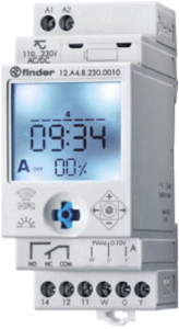Finder 12 digitale schakelklok vr paneelbouw, breedte 35.8mm, 2 kanalen, weekprogramma, astroprogramma, voedingsspanning 230V, spanningstype voedingsspanning AC, DIN-rail, tekstbegeleiding in het display, externe programmering, frequentie voedingsspanning 50 - 60Hz, autonomie in jaren 6,