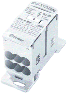 Finder Insteek en printrelais aansluitklem voor hoofdkabel, (hxbxd) 75x29.4x51mm, 1 pool, aansluitwijze schroeven, aanrakingsveilig, DIN-rail/schroef, geleiderdoorsnede ingang 10 - 35mm², geleiderdoorsnede uitgang 2.5 - 16mm², nom. stroom 125A, 2 ingangen, 6 uitgaande lijnen,