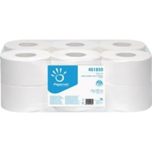 Papernet toiletpapier Mini Jumbo. 2- laags. Kleur: wit. Hoeveelheid: pak 12 rollen.