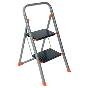 Opstapkrukje van staal Tinto, Max. belasting: 150 kg, Platform hoogte: 0.50 m, Aantal treden incl. platform: 2, Toegangshoogte: 2.40 m, Lengte platform: 0.20 m, Breedte platform: 0.30 m, Materiaal: Staal, Kleur: Grijs/zwart, Dikte ingeklapt: 35 mm, Totale hoogte: 0.82 m, Totale breedte: 0.46 m, Staander materiaal: Staal, Diepte sport: 200 mm, Breedte sport: 300 mm, Ingeklapte hoogte: 0.89 m, Breedte vloeroppervlak: 0.46 m, Lengte vloeroppervlak: 0.56 m, Coating: Epoxy