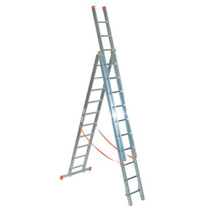 Reformladder Eco, Materiaal: Aluminium, Opengeklapte hoogte: 7.8 m, Werkhoogte opengeklapt: 8.7 m, Aantal delen: 3, Aantal treden: 10, Ingeklapte hoogte: 3.26 m, Leunladder hoogte: 7.8 m, Lengte vloeroppervlak: 2.20 m, Breedte vloeroppervlak: 1.07 m, Lengte trede: 400 mm, Breedte trede: 30 mm, Max. belasting: 150 kg, Hoogte tussen 2 treden: 300 mm, Gewicht: 24.5 kg