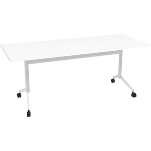 Vergadertafel van 180 cm breed Pop-Up, Type onderstel: V-poot, Hoogte: 73 cm, Breedte: 180 cm, Vorm: Rechthoek, Tafelblad kleur: Wit, Type: Opklapbare vergadertafel, Onderstel kleur: Wit, Diepte: 70 cm, Tafelblad materiaal: Gemelamineerd, Onderstel materiaal: Staal, Selectie telewerken: nee, Dikte tafelblad: 30 mm
