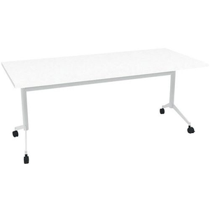Vergadertafel van 180 cm breed Pop-Up, Type onderstel: V-poot, Hoogte: 73 cm, Breedte: 180 cm, Vorm: Rechthoek, Tafelblad kleur: Wit, Type: Opklapbare vergadertafel, Onderstel kleur: Wit, Diepte: 80 cm, Tafelblad materiaal: Gemelamineerd, Onderstel materiaal: Staal, Selectie telewerken: nee, Dikte tafelblad: 30 mm