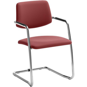 Sledestoel voor bezoekers en gemeenschappen in ecoleer, Met armleggers: ja, Type onderstel: Slede, Type stoel: Stoel, Stapelbaar: nee, Kleur: Rood, Onderstel materiaal: Staal, Zitbreedte: 50 cm, Zitdiepte: 48 cm, Zithoogte: 46 cm, Rughoogte: 32 cm, Aantal stuks: 1, Geleverd gemonteerd: ja, Materiaal armleuning: Staal, Zitting materiaal: Polypropyleen, Rugleuning materiaal: Polypropyleen, Dichtheid schuimzitting: 30 kg/m³, Dichtheid schuimrug: 25 kg/m³, Hoogte: 85.5 cm, Selectie telewerken: nee, Gerecyclede verpakkingen: 48 %, Gewicht: 18 kg, Armleuning instellen: Vast, Breedte: 56.5 mm, Rugbreedte: 48 cm, Diepte: 61 cm, Dikte zitting: 40 mm, Max. steungewicht: 110 kg, Zitting kleur: Rood, Rug kleur: Rood