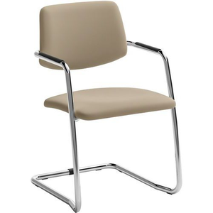 Sledestoel voor bezoekers en gemeenschappen in ecoleer, Met armleggers: ja, Type onderstel: Slede, Type stoel: Stoel, Stapelbaar: nee, Kleur: Beige, Onderstel materiaal: Staal, Zitbreedte: 50 cm, Zitdiepte: 48 cm, Zithoogte: 46 cm, Rughoogte: 32 cm, Aantal stuks: 1, Geleverd gemonteerd: ja, Materiaal armleuning: Staal, Zitting materiaal: Polypropyleen, Rugleuning materiaal: Polypropyleen, Dichtheid schuimzitting: 30 kg/m³, Dichtheid schuimrug: 25 kg/m³, Hoogte: 85.5 cm, Selectie telewerken: nee, Gerecyclede verpakkingen: 48 %, Gewicht: 18 kg, Armleuning instellen: Vast, Breedte: 56.5 mm, Rugbreedte: 48 cm, Diepte: 61 cm, Dikte zitting: 40 mm, Max. steungewicht: 110 kg, Zitting kleur: Beige, Rug kleur: Beige