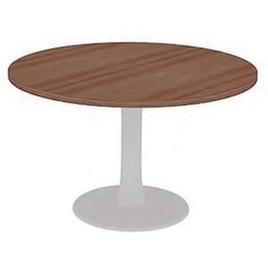 Vergadertafel met rond blad diameter 120 cm, Type onderstel: Centrale, Hoogte: 73 cm, Breedte: 120 cm, Totale diepte: 120 cm, Vorm: Rond, Tafelblad materiaal: Gemelamineerd, Tafelblad kleur: Noten, Onderstel kleur: Wit, Tafel Ø: 120 cm, Selectie telewerken: nee, Onderstel materiaal: Staal, Eco-verantwoordelijke aanpak: ja, FSC licentie: ja