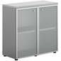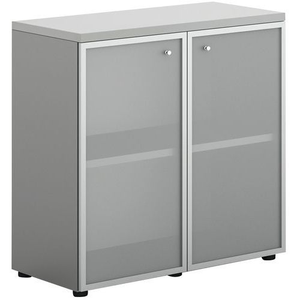 Kast met glazen deur Naxos, Totale hoogte: 89 cm, Totale breedte: 86 cm, Selectie telewerken: nee, Kleur: Grijs, Totale diepte: 45 cm, Kleur deur: Wit, Aantal legborden: 1, Type: Houten kast, Materiaal: Spaanplaat, Eco-verantwoordelijke aanpak: ja, FSC licentie: ja