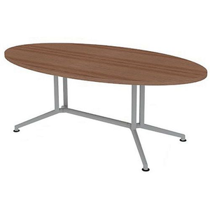 Vergadertafel met ovaal blad lengte 200 cm, Hoogte: 720 cm, Breedte: 200 cm, Vorm: Ovaal, Tafelblad kleur: Noten, Onderstel kleur: Zilver, Selectie telewerken: nee, Onderstel materiaal: Staal, Eco-verantwoordelijke aanpak: ja, FSC licentie: ja