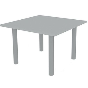 Vergadertafel met vierkant blad 110x110 cm, Type onderstel: 4 poten, Hoogte: 73 cm, Breedte: 110 cm, Totale diepte: 110 cm, Vorm: Vierkant, Tafelblad materiaal: Hardboard, Tafelblad kleur: Grijs, Vermogen (aantal personen): 4, Onderstel kleur: Zilver, Selectie telewerken: nee, Onderstel materiaal: Staal, Type: Vergadertafel